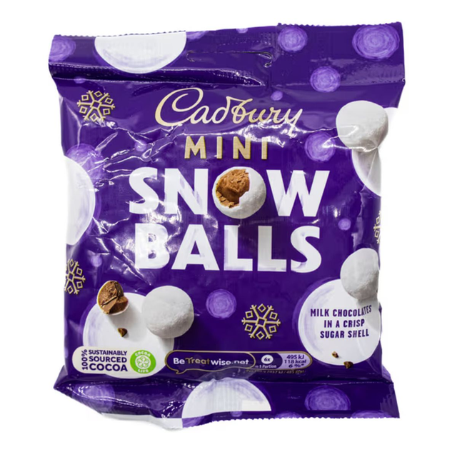 Solid Milk Chocolate balls in crisp sugar shells dusted with Icing Sugar.